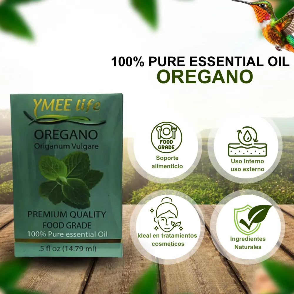 Este aceite esencial de orégano (Origanum Vulgare) se presenta en un envase de 14.79 ml. Es un producto 100% puro, destilado con cuidado a partir de la variedad Origanum Vulgare.