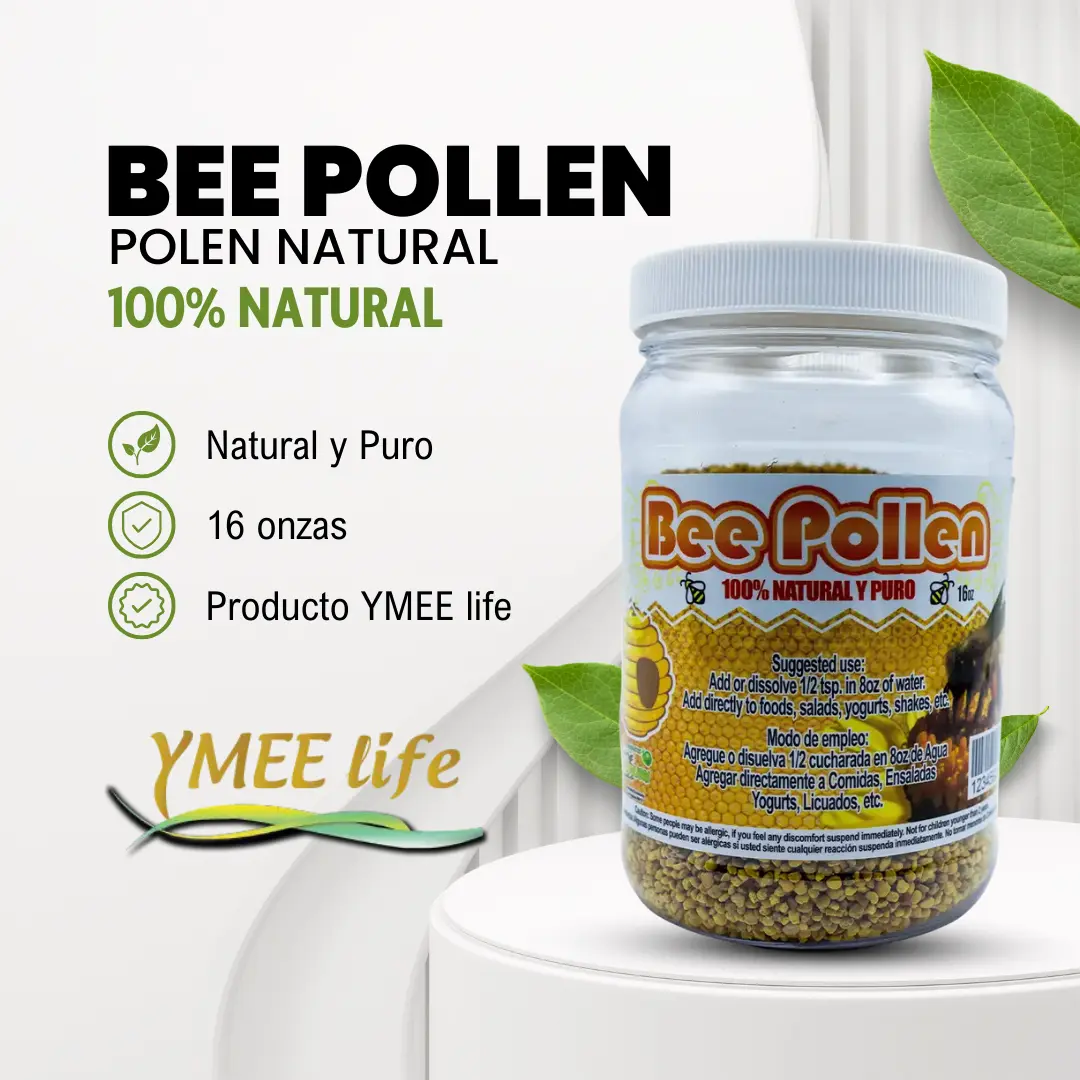 Este suplemento alimenticio contiene polen de abeja 100% natural y puro, recolectado con maestría por las abejas. Se presenta en una botella de 16 onzas, ofreciendo una fuente concentrada de diversos nutrientes como vitaminas, minerales y proteínas.