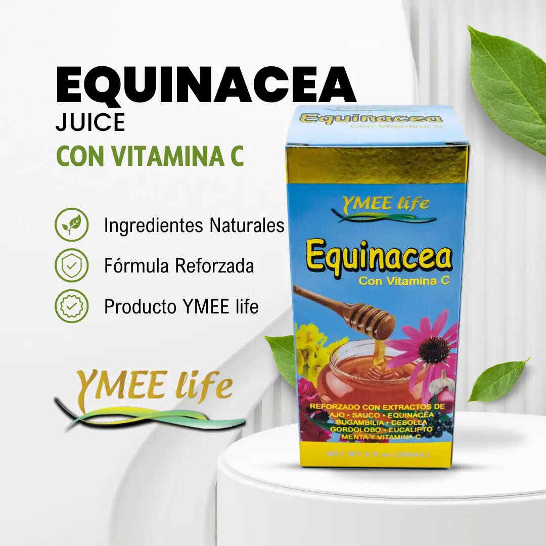 Suplemento alimenticio a base de Equinacea y Vitamina C, presentado en botella de 8 fl. oz (240 ml).